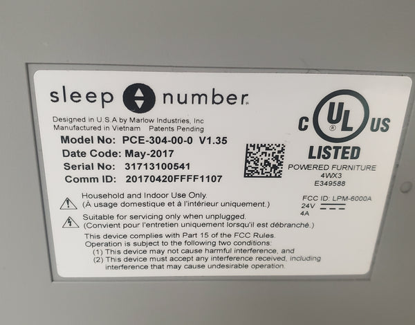 Sleep Number PCE-304-00-0 V1.35 Heating and Cooling Air Pump w/ Adapter