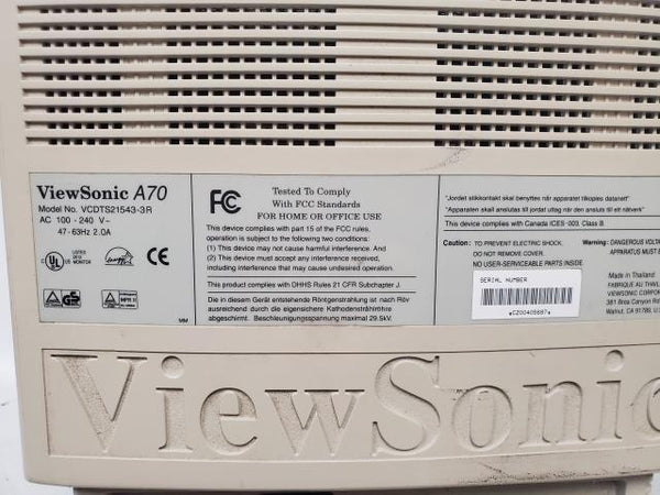 Vintage Gaming ViewSonic A70 VCDTS21543-3R 16" CRT VGA Computer Monitor